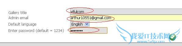 第十五步:点击后面的上面的勾勾,进行对相册的相关操作!在新点开的框框里面输入相册的名称、你的邮箱、语言(如果你下载的MG2是中文版的可以选中文)、密码。