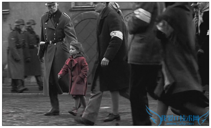 辛德勒名单电影中的某镜头,通过色彩强烈的对比拉开视觉层次,给观众留下了深刻的印象同时成为经典
