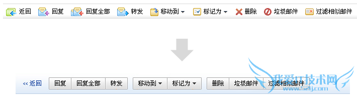 上面的是我们外贸邮界面目前的状态,所有的操作都并列摆放,随着功能的增多,用户识别的效率大大降低,优化的方案是将相关的操作进行分组,正是运用关联和并列的信息关系进行设计