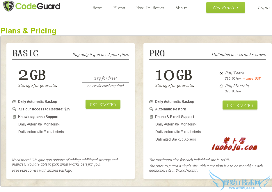 1、请打开http://www.codeguard.com网站,会看到get started按钮。如下图(点击查看大图):