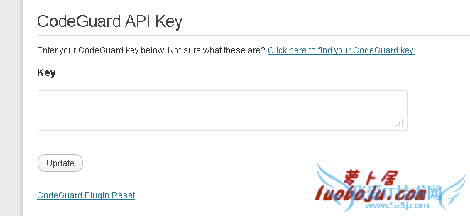 6、安装完插件后,您会看到其会要求输入codeguard api key,将上一步我们复制的key输入,激活即可。