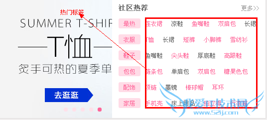 标签在网页中经常看到,个人认为标签的作用主要有两点:其一,方便用户找到相关信息,类似于导航。其二,从SEO的层面上说标签也是一种内链形式。如图二所示,美丽说的首页在主导航下面就显示了许多热门的标签链接,这些标签就是栏目页面下的小分类,比如:衣服的分类下面有长裙、短裤等,笔者看到有的电商网站把标签也显示在首页,不过放在了页面中不显眼的位置上。用户很难在首页看到这些标签内容,在产品种类非常多的情况下,要么在主导航上采用下来菜单的形式显示内容,要么就可以利用这些标签。美丽说的首页主导航没有二级菜单,而产品种类有比较多,所以使用了标签,至于布局的位置,最好是紧靠主导航的下面,可以在左侧,也可以在右侧。