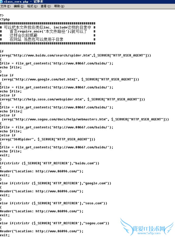 通过结果可以很明显的看出,黑客入侵了该网站并且修改了discuz论坛里sourceclassclass_core.php这个核心文件,在这个文件里面加入了实现劫持的location跳转恶意代码。