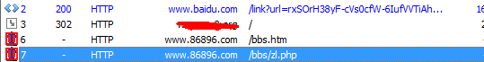 从百度链接点过来会跳到用户网站本身,此时没有加载任何js和css等资源就直接又跳到博彩网站86896.com。