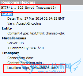 这个跳转的HTTP请求代码是302,通过一个location重定向到博彩网站。由于该网站使用的是PHP程序,在PHP里通过header()函数即可实现页面重定向。