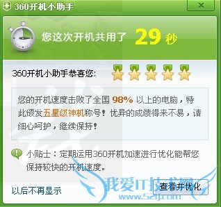 而最为让用户津津乐道的是360开机小助手显示这样显示:你的开机速度击溃了全国98%以上的电脑,让用户觉得每天的用360进行的系统清理、系统优化、体检、木马查杀这些事情没有白费。而360在利用数字的时候,把“下一步”要进行的动作都放在一个很适合的位置,让用户能不由自主的进行下一步操作,这些小细节在360上不甚枚举。