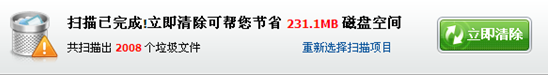 而360最拿手的夸耀是向用户展示自己的功劳,比如在进行一次系统清理之后,就会告诉你为你节约了多少多少磁盘,如上图所示,虽说目前硬盘很便宜,但用户还是很在乎自己的磁盘大小的,而360正是抓住了用户这一特点,用数字把节省的磁盘直接展示出来,一来让用户非常有成就感,二来让用户对360产生好感。