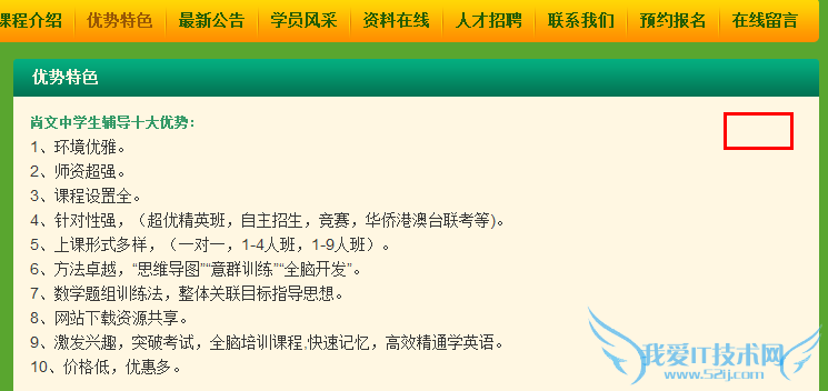首先导航版块的顺序不合理,把“关于我们”放在首页后面的第一位,不符合用户浏览网站的习惯,建议调换位置,把“课程介绍”“特色优势”等放在前面,这也是用户浏览网站的主要目的。