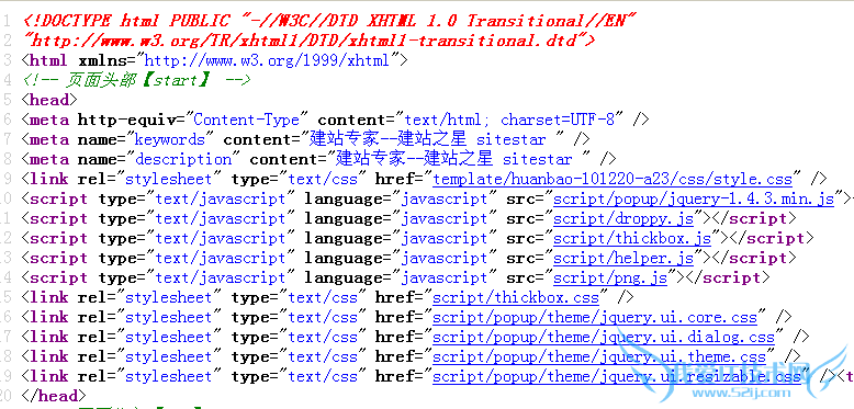 Head部分:上图我们不难看出,这个些模板站都调用大量的JS文件,以及css样式文件。从优化网站速度的角度来看,我们必须要做的就是将部分JS 以及CSS样式文件合并,以减少网站对文件的请求次数。以提升网站打开速度。建站之星的部分网站实际上只是企业站为主而已,很多JS可以简化,甚至剔除。