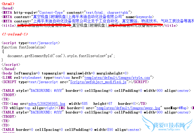最基本的网站声明就没有写完整。并且网站也较为落伍,采用的还是较为老旧的table布局方式。我们都知道,为了让蜘蛛最大限度的抓起网站有效内容的最佳做法就是采用div+css的布局方式将内容和形式最大限度的分离,将有效内容裸露出来以便蜘蛛爬行。