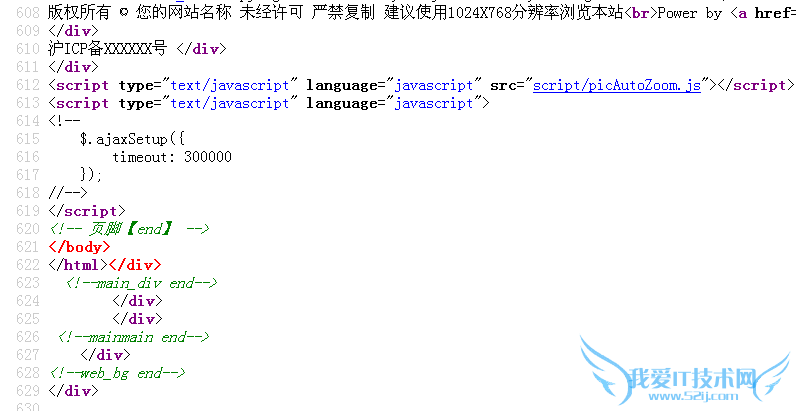 Footer部分:看到这里大家可能一下就发现问题所在了,代码嵌套错误。正常的网站在后就结束了,但是这些模板网站却在结束后又出现了
