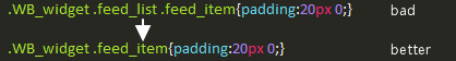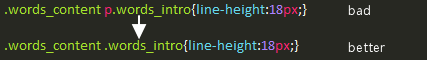 浏览器样式渲染引擎是按照从右向左的顺序来解析CSS选择器,最右边的选择符称为关键选择符(Key Selector),每一个额外的继承选择符都会增加样式渲染引擎的查找匹配时间。而且,如果没有额外的继承关系,子元素会有更好的重用性。
