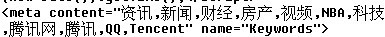 本来这个关键词在title上没有连在一起去写的,也能排到第一位,这就是分词的做法。再来看看腾讯网的keywords设置吧!