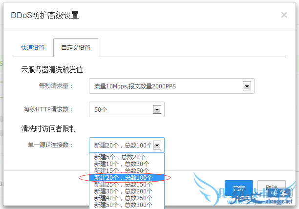 可能开启了云盾,也正确解析了域名,但是被CC攻击时,云盾还是毫无反应?!实际上还要设置下DDoS防护高级设置,因为云盾默认的DDoS防护阈值还是太高,如下所示: