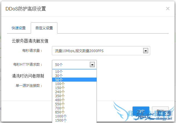 清洗触发值: 每秒请求流量:180M 每秒报文数量:30000 每秒HTTP请求数:1000