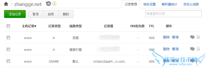 本想,百度自家的云加速解析,对搜索引擎线路的判断应该是最靠谱的(对于做百度流量的网站来说),毕竟是自家的产品,有哪些蜘蛛IP,都一清二楚,不会搞错!但实际测试发现,百度云加速目前并不支持cname默认线路的同时,新增搜索引擎线路,会提示该记录已存在!