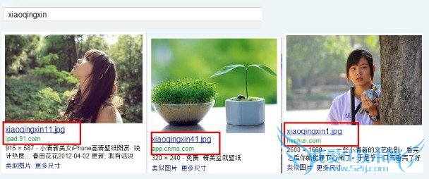 其实图片URL也是一个可以为我们带来流量地方,特别是图片的路径问题,这种包括URL和图片的命名方式,下面呢,就站在搜索的角度中探索一下这种方式的与众不同,那么如图所示,就是笔者搜索之后得到的结果,笔者搜索的是“xiaoqingxin”,如图