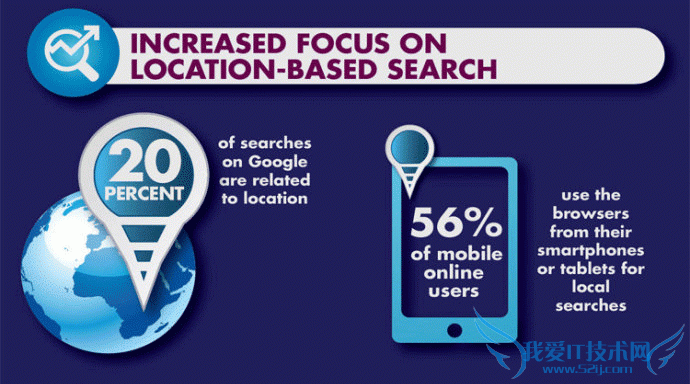 基于地理位置的搜索时搜索引擎发展的一个趋势,用户在搜索关键词的同时已经结合了其所在的时空信息,比如我搜索“餐馆”就能够搜到本地的餐馆,这样可以是搜索更精准化和人性化。在谷歌上与地理位置关联的搜索已达到20%,而在移动端的占比更加高,这是互联网发展的一个趋势,更是搜索引擎本地化搜索的一个趋势。