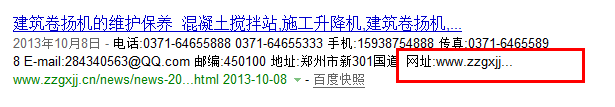 从收录上来看,很多内页都有首页链接,可以说很多的内页都指向首页,大多数被惩罚都是这个原因,一定不要在内页里写上首页链接并指向首页,多了的话会直接造成K站、降权,建议更正。内页里可以写这个内页的地址,这个是可以的,发布人可以填写公司名称。