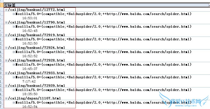 下面说个比较简单且非常实用的方法,通过EXCEL的一些简单的公式做出想得到的一系列数据,例如时间间隔,爬行页面,返回状态码,网址参数,蜘蛛类型,蜘蛛IP等,通过以上数据可 以进行对网站的问题的排查,更正。