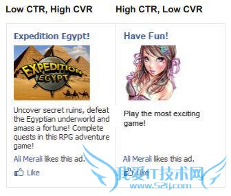 有些图片会获得更高的CTR,但转化率较低,而其他图片会获得低点击高转化。下面是一个AdParlor提供的例子: