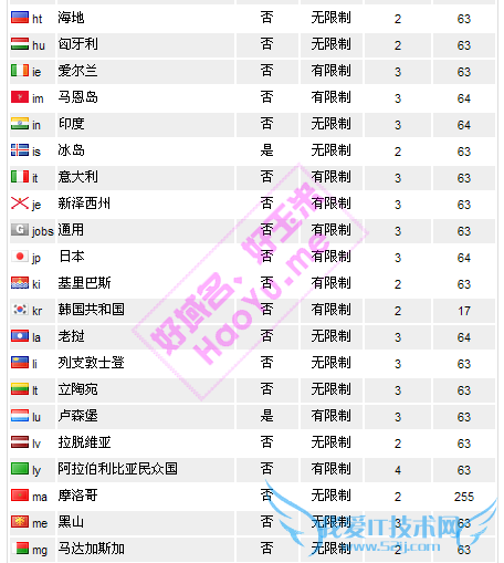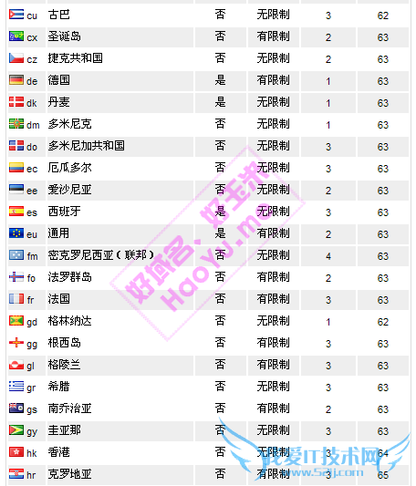不少朋友喜欢小米,喜欢短域名。但域名后缀太多,什么后缀可注册短的,什么后缀允许国人注册等很多问题大家又不是十分清楚,为此,QQPCC专门帮朋友们整理了一下。下面这个是根据Eurodns官方资料翻译并适当修改的,“IDN”是表示能否注册IDN,“限制”是指是否对注册者的身份有要求,“最短”和“最长”指域名前缀的字符数范围。