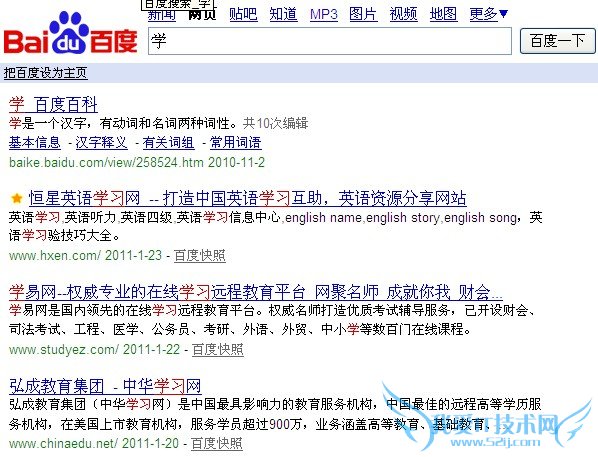 2、基于统计: 百度把一个词标红的原因:标红的词一般是一个关键词,你搜索“学”字的时候,百度它自认的把“学习”也当成了一个关键词,所以出现“学习”这个词标红,这就是百度分词法:基于统计分词。