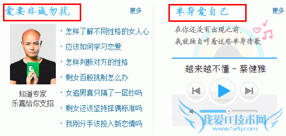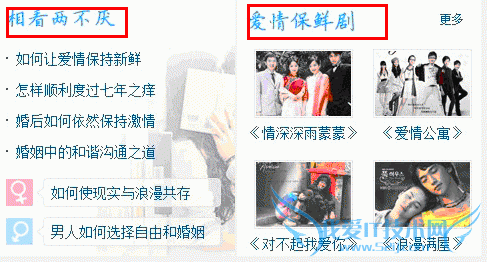 这些区域分别就是这种专题的主线,也就是线索,根据这些线索将这个页面整体化起来,成为一张精美的七夕爱情栏目。