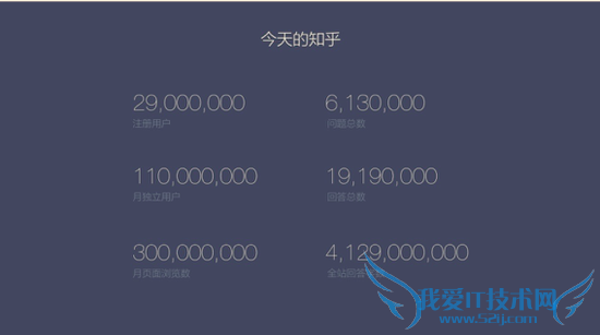 截至2015年7月,知乎社区已拥有2900万注册用户,月UV1.1亿,月累积页面浏览量达3亿。现在知乎全站已累计产生约620万个问题,以及近2000万个回答。用户总回答4,129,244,445字数,是大不列颠百科全书的近100倍,鹿鼎记的2580倍。