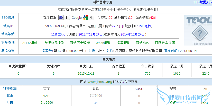 在控制文章质量后,网站质量得到了有效改善,这点从pr可以提现。谷歌pr在12月7日更新,我们欣喜的看到江西现代服务交易网网站pr一下子从无到4,说明了我们工作中取得的一些进步。
