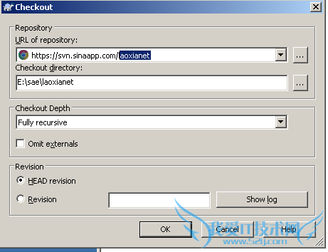 在弹出页面中填写仓库路径即可,这里是:https://svn.sinaapp.com/laoxianet,其它默认参数即可Laoxianet是我的应用名,请输入你的地址。
