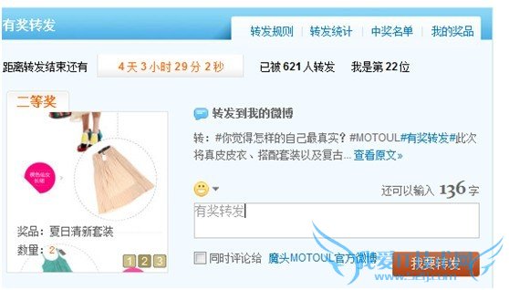 奖品数量上 也必须有所侧重 我个人建议单价保持在千以内 数量选择5-20不等 因为毕竟是有奖转发 只抽一件 很多人就没兴趣了 反正肯定轮不到我 那如果奖品数量是10-20-30 这样的情况就不一样了 参与度也就高了