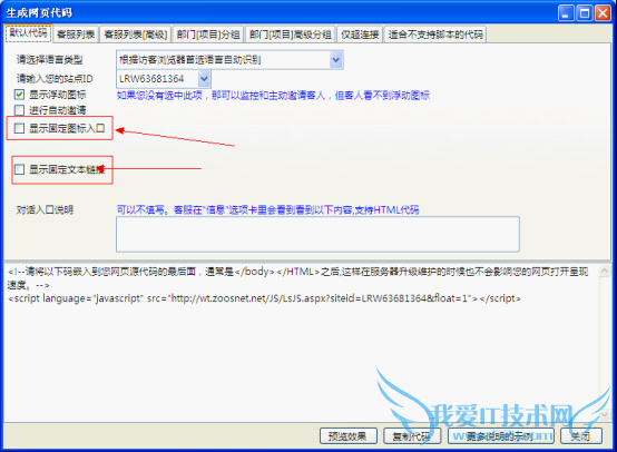 “在生成网页代码”的选项中,我们可以看到有“显示固定图标入口”和“显示固定文本链接”两个选项。根据你的按钮是文字还是图片,进行勾选并按照提示一步步操作,就可以获得相应的JS代码。