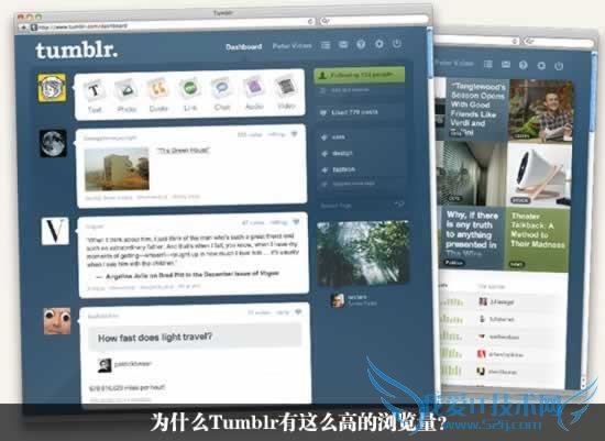 Tumblr鉴于博客和轻博客之间,有一定能肯定的是,在Tumblr获得大量PV后,获得了新一轮融资,其实对这些我倒不是很关心,我到挺好奇Tumblr为什么有这么高的内部浏览量的,难道真的是内容好,还是有看头?这对于我们做网站的人来说非常具有学习意义。