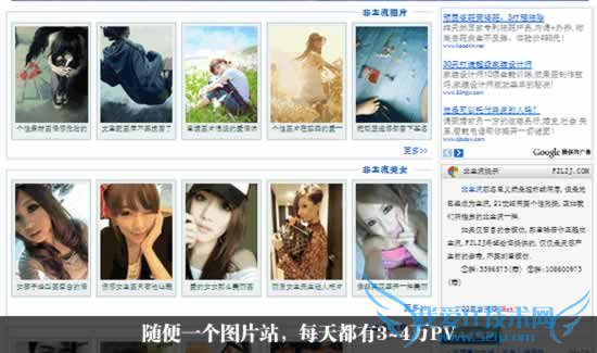 图 片站本身是个好东西,可啥东西到国人手上就变了,像之前的奇虎、大旗,到现在的新浪、网易、猫扑哪个网站不带些诱惑?尤其是美女图片、搞笑图片,随便一个 中小的图片站,每天都有3~4万PV,毕竟看图比看文字养眼,国内大多数网站的做法就是一个内容页只放一张图片,要看下一张图片则必须翻页,如果要完整一 篇内容,少则十几个PV,多则几十个。