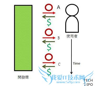 图解:使用者在持续使用App时定期支付金额给开发者