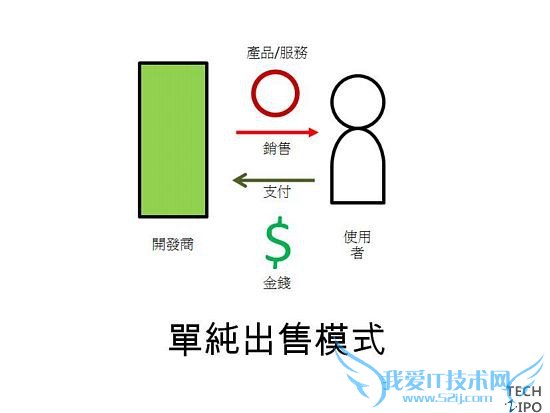 图解:使用者支付金钱购买App, 开发者因而获利