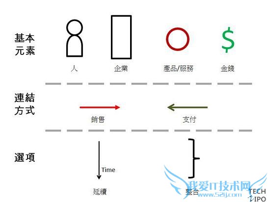 要了解商业模式,用图解的方式就可以清楚一目了然。而在绘制图解时,我们需要先把商业模式中包含的各种元素先定义出来。其中包含企业、个人、支付金钱、提供产品或服务、时间等。而运用这些基本元素,就可以组合变化出各式各样的商业模式。