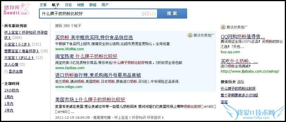 图:搜索“什么牌子的奶粉比较好”出来的结果