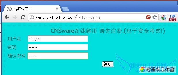 上传压缩包以及解压程序的两个php文件上传到主机,首次使用需要设置账号和密码。