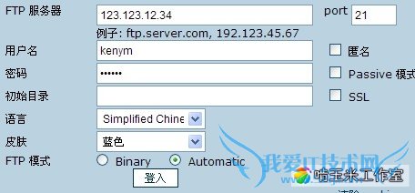 进入网站,输入主机IP地址以及FTP账号密码,登录!