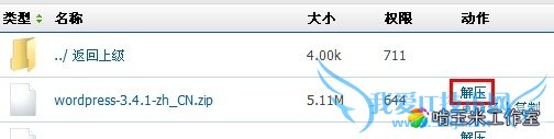 上传压缩包,进入DA后台的文件管理器,点击压缩包右边的“解压”链接,
