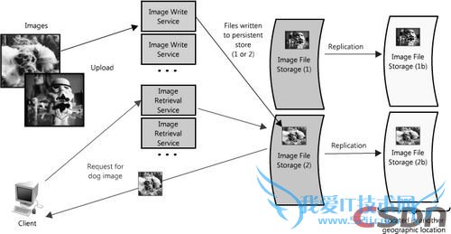 快进并假设服务正在大量使用;在这种情况下,很容易看到写图片的时间对读图片时间有多大影响(他们两个功能在彼此竞争共享资源)。根据各自体系,这种影响会是巨大的。即使上传和下载速度相同(这是不可能的,对于大多数的IP网络来说,下载速度:上传速度至少是3:1),通常,文件可以从缓存中读取,而写入,最终是写到磁盘中(也许在最终一致的情况下,可以被多写几次)。即使是从缓存或者磁盘(类似SSD)中读取,数据写入都会比读慢(Pole Position,一个开源DB基准的开源工具和结果)。