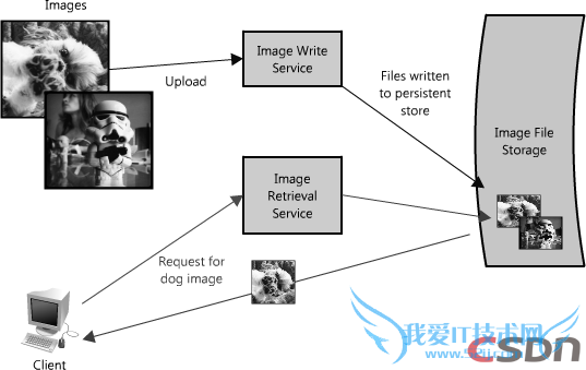 在我们的例子中,所有上传和检索请求都在同一台服务器上处理。然而,因为系统需要具备可伸缩性,所以把这两个功能打破并集成到自己的服务中是有意义的。