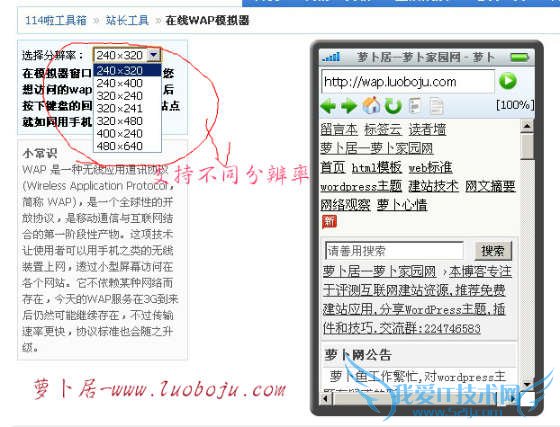 写在最后,每天都有亿万用户使用移动设备上网, 您是否有适合移动设备浏览的网站? 如果没有或者您还不确定,那么从现在开始,建立自己的移动网站吧。嘿嘿。今天,啰嗦的有点多了,介绍了几款常用的wap网站调试工具,嘿嘿。本文由萝卜居家园网 http://www.luoboju.com 原创发表,转载请注明,当然咯,不注明的话,萝卜鱼也没辙。