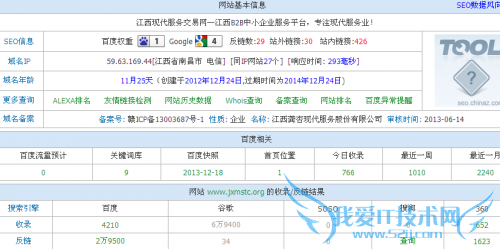 网 站到10月20日的时候,收录为547,收录比率仅为3.65%。尽管,网站也许还在审核阶段,收录不可能很高,但是仍然可以通过采取一些手 段增加网站的收录比率。21日通过对网站调整辅助导航(增加了指向首页的链接,从而提高网站权重,这也是造成“江西现代服务交易网”这个关键词上升不了的 原因),更改网站文章内页模板标题,增加无关链接的nofollow标签等手段后,仅在4天后,网站收录出现一个大的提升,同比净增长142.92%。当 然,在采取这些大的内部结构改动后,网站快照从隔日更新瞬间近半个月维持在10月21日。