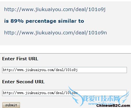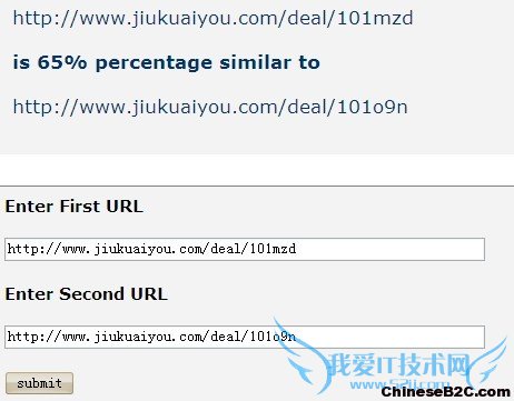 这是一个国外非常权威的网页相似度检测工具,通过检测两个不同的产品页面,得到的结果,像这么高相似度的页面,不容易收录,而且在站内这种页面数量达到一定的比例,非常容易导致网站降权甚至拔毛。