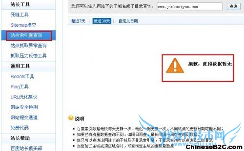 站长索引量查询,目前没有数据,因为这个网站被百度K了,而且是重度惩罚,一点数据都没有了;