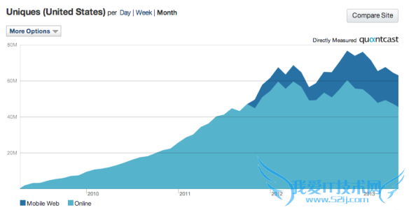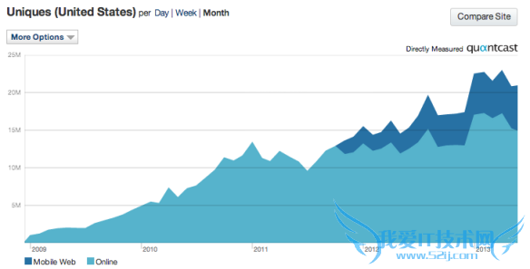 Tumblr是排名前20的网站,他们的复合年增长率为130%,月复合增长率为7%。可以看出,这样一个取得了巨大成功的网站,他们的流量增长也是稳步提高的,而非一夜之间迎来大量新用户。