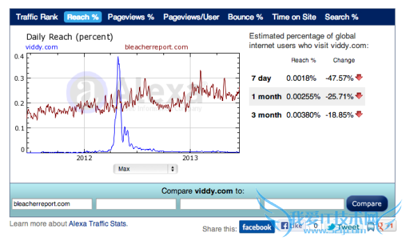一年以前,Viddy获得了将近3.7亿美元的大额融资,他们的流量增长图显示,2012年4月,他们的流量出现了不可思议的上涨: